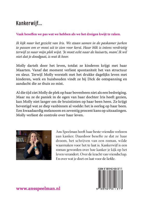 Kankerwijf is een roman over hoe kanker je kijk op het leven verandert. Over de kracht van vriendschap. En over wat je doet en laat voor de liefde.
